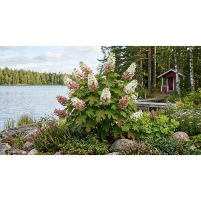 Tammenlehtihortensia Snow Queen (‘Flemygea’) (Hydrangea quercifolia Snow Queen ’Flemygea’).